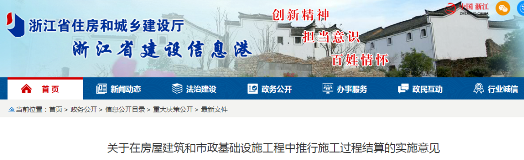 浙江省2020年5月20日,浙江省住建廳發布《關于在房屋建筑和市政基礎設施工程中推行施工過程結算的實施意見》:自6月20日起,在全省房建和市政項目中全面推行施工過程結算。