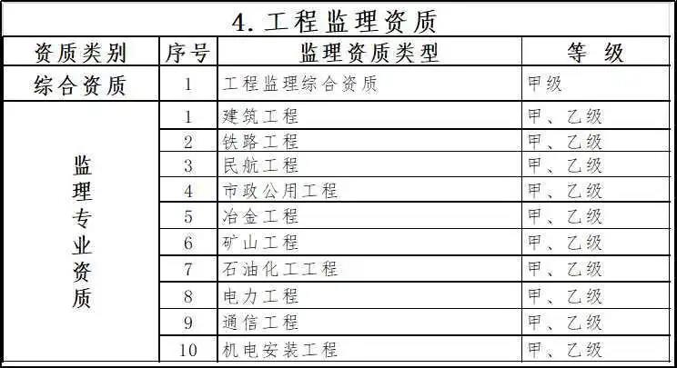 保留綜合資質。取消水利水電工程、公路工程、港口與航道工程等專業資質,其資質要求執行有關行業主管部門規定。取消農林工程監理資質,建設單位委托農林工程監理業務時,不再作資質要求。上述4個監理專業資質取消后,相關企業可以換發相近專業同等級監理專業資質。監理專業資質等級壓減為甲、乙兩級,原丙級資質并入相應專業的乙級資質。取消事務所資質。