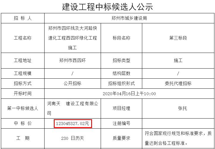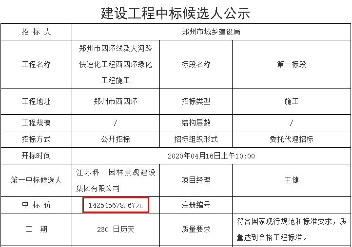 近日,鄭州市住建局通報:在鄭州市西四環及大河路快速化工程西四環段綠化項目投標中,